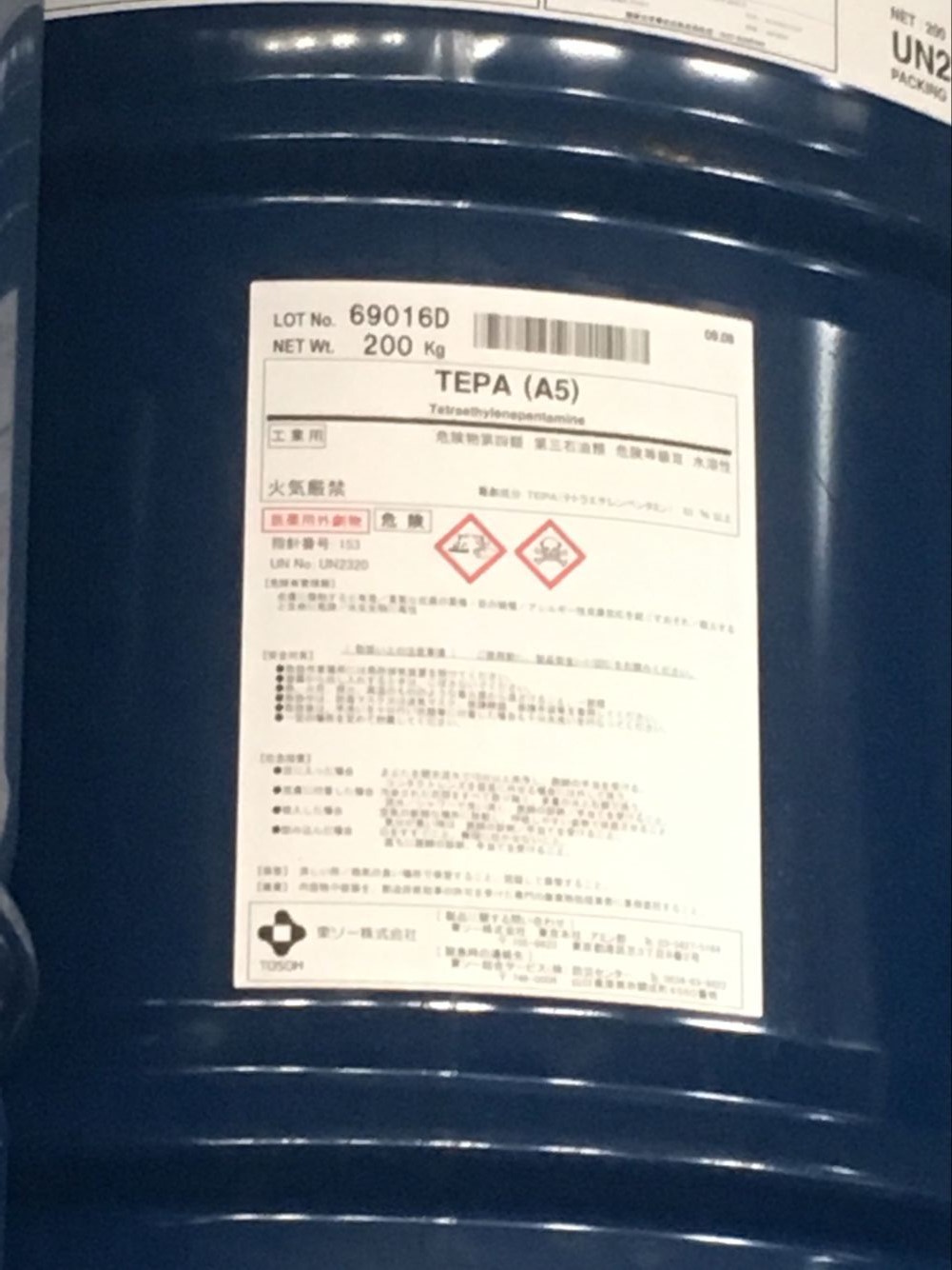 產(chǎn)品名 | 四乙烯五胺 | 英文名 | Tetraethylenepentamine(TEPA) | 產(chǎn)品外觀 | 微黃液體 | 包裝規(guī)格 | 200kg/桶(鐵桶) | 產(chǎn)地 | 日本 | 供應(yīng)商 | 東曹 | 應(yīng)用 | 固化劑、聚酰胺樹脂等 | 危險(xiǎn)類別 | 8類; | CAS NO | 112-57-2 |